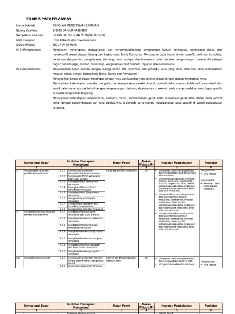 Silabus produk kreatif dan kewirausahaan kelas xii smk bisnis dan manajemen. Check spelling or type a new query. We did not find results for: Maybe you would like to learn more about one of these?