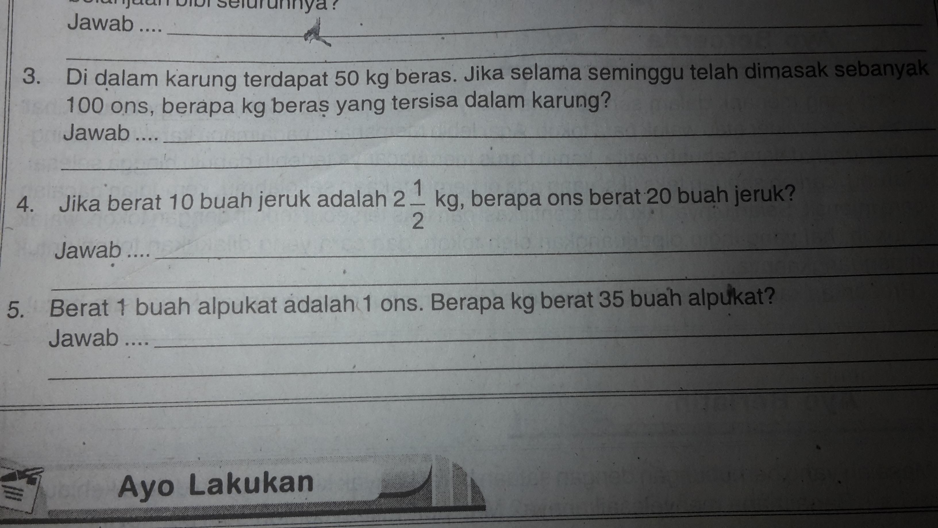1 ons belanda itu sama dengan 100 gram. Tahukah kamu berapa berat badanmu. 2 kg = 2 × 10 = 20 ons; Maka sama saja nenek membeli telur sebanyak… a. 1 kg = 10 ons